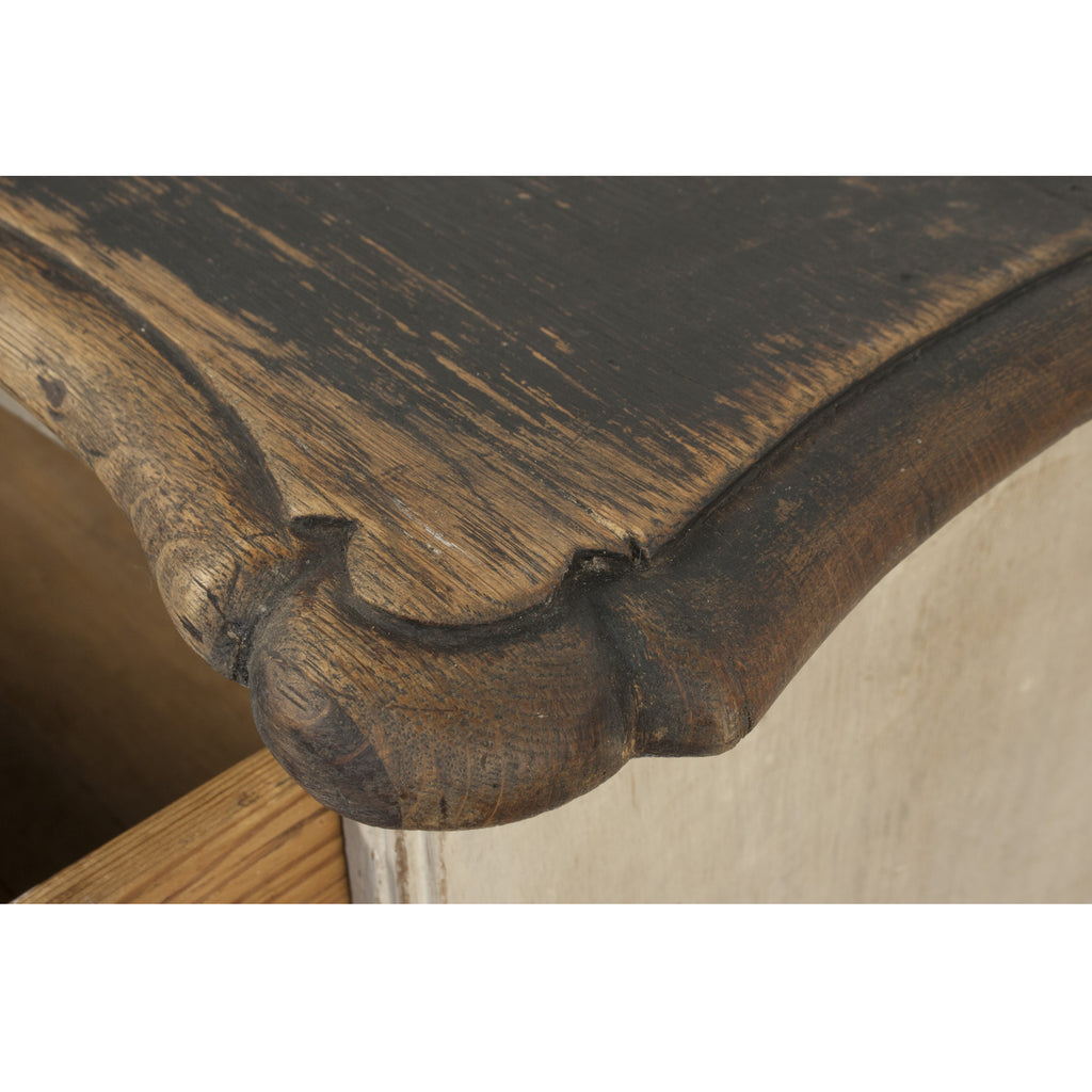 #640 Three drawer Baroque Chest in a worn patina of grey's and black. Sweden, Year Appr. 1740