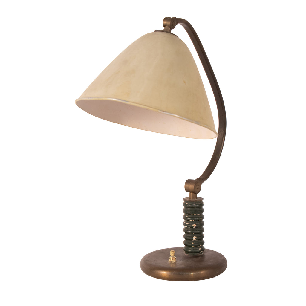 #1268 Table Lamp in Brass and Wood by Erik Tidstrand, Year Appr. 1930, W9 D15 H17.5