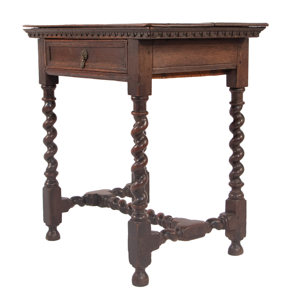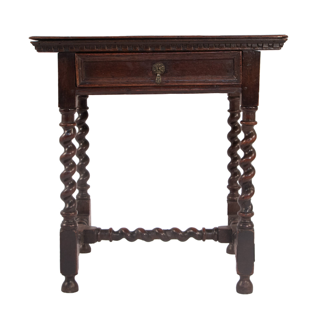 #1323 Baroque Table in Oak, Year Appr. 1700, W28.25 D18 H29