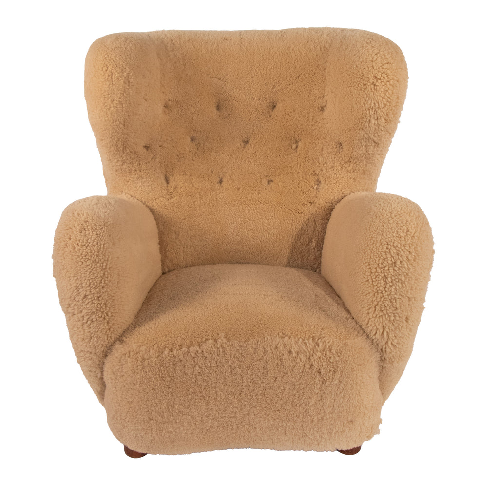 #1437 Lounge Chair in Sheep Skin, Year Appr. 1940, W34 D34 H37.5