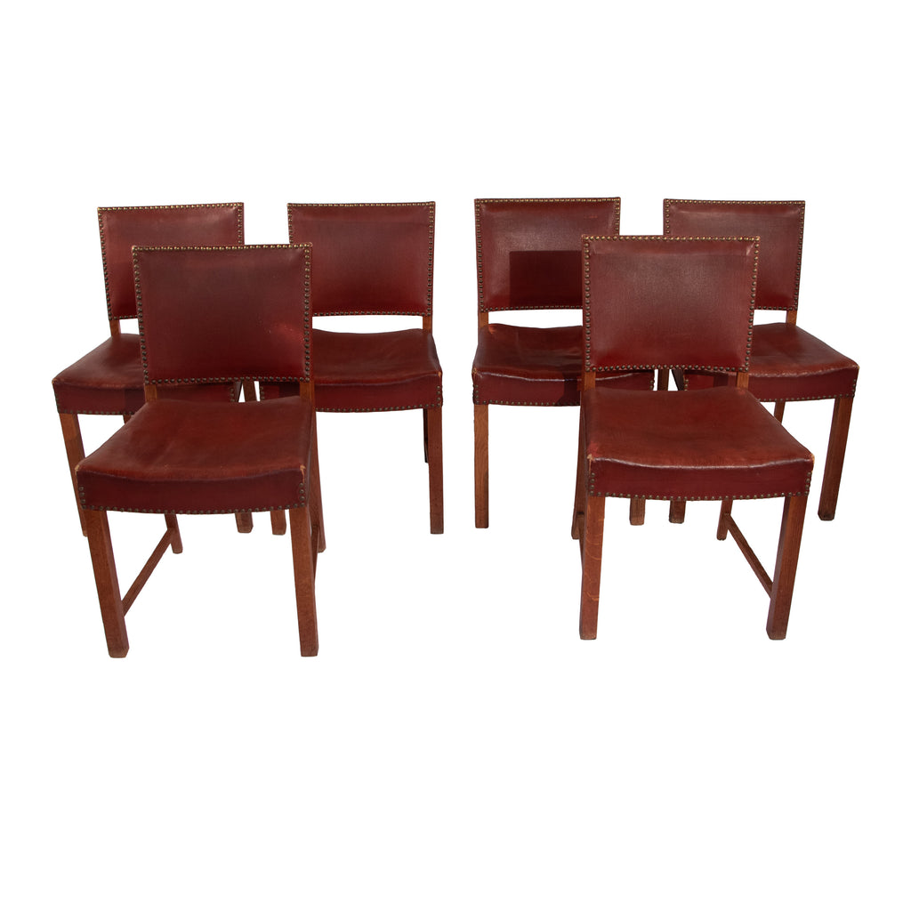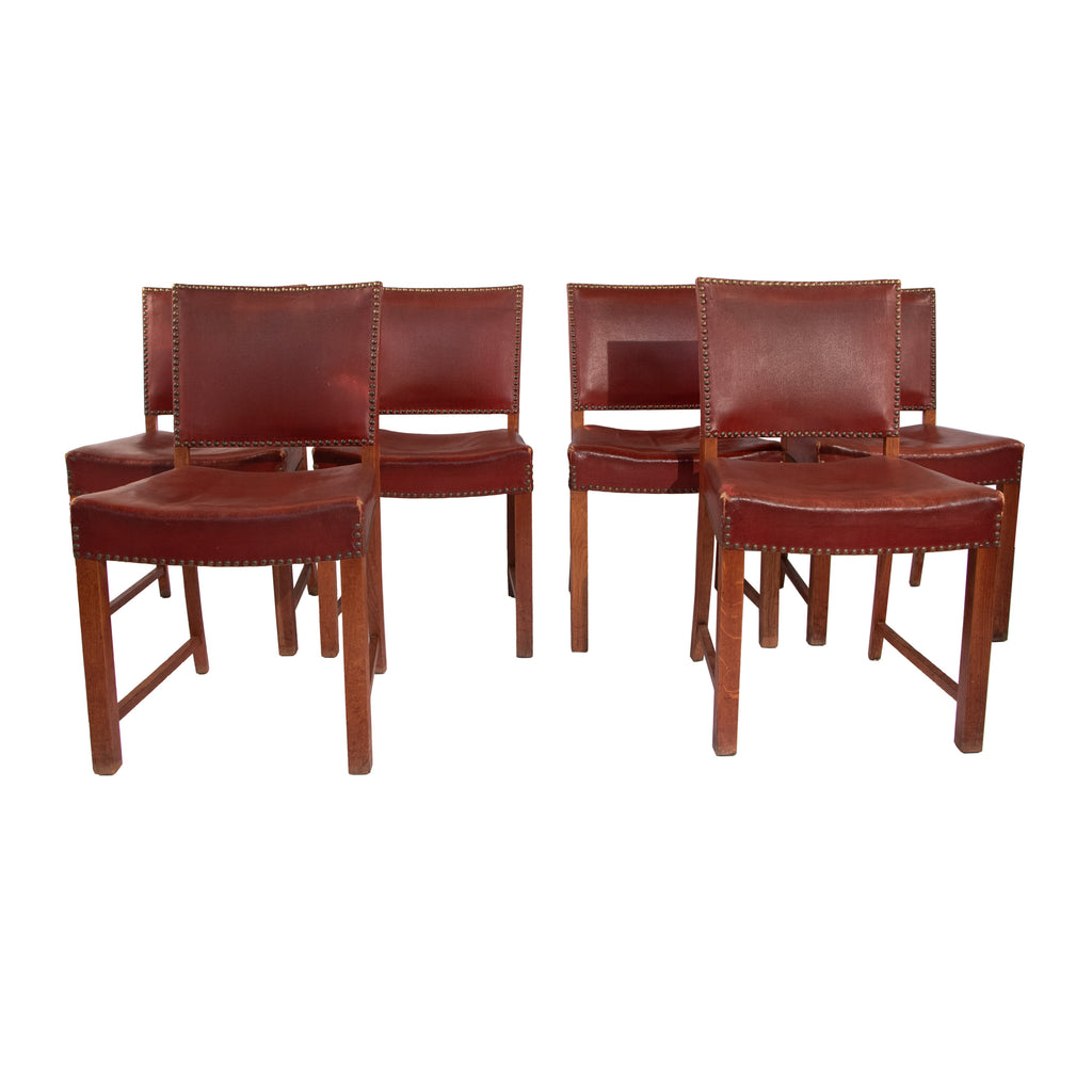 #1581 6 Oak Chairs by Fritz Hansen in Imitation Leather, Year Appr. 1940, W18.75 D20.5 H32.5