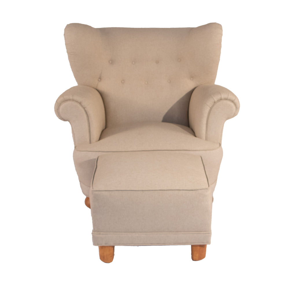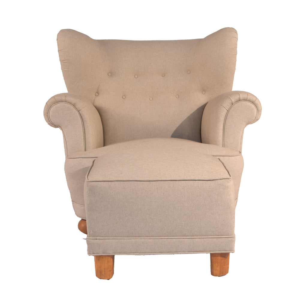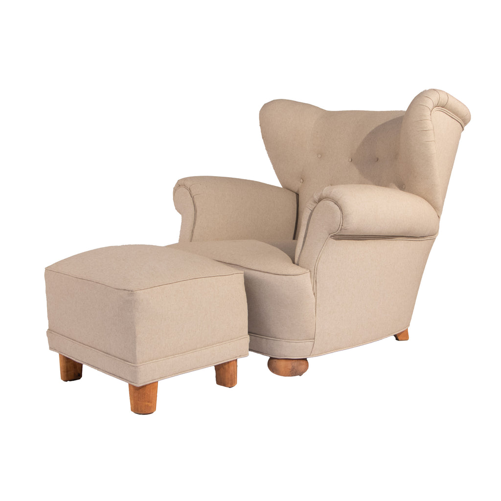 #3 Lounge Chair with Foot Stool, Year Appr. 1940, W36 D38 H35 Stool W20 D16 H16